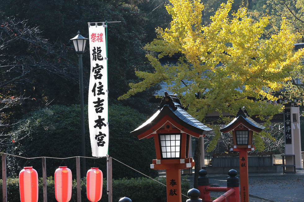 龍宮住吉本宮とイチョウ。